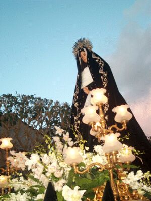 Desfila a continuación la imagen de la: "La Virgen de la Soledad", escoltada por miembros de la Guardia Civil con uniforme de gala. Esta imagen, vestida con manto de terciopelo negro bordado en plata por las Clarisas de Monforte de Lemos en el año 1989, que desfila sobre trono decorado con flores, flanqueado por cuatro farolas con tulipa, es obra del tallista compostelano don José Rivas y sustituye a otra articulada, que todavía se utiliza en ciertos actos.